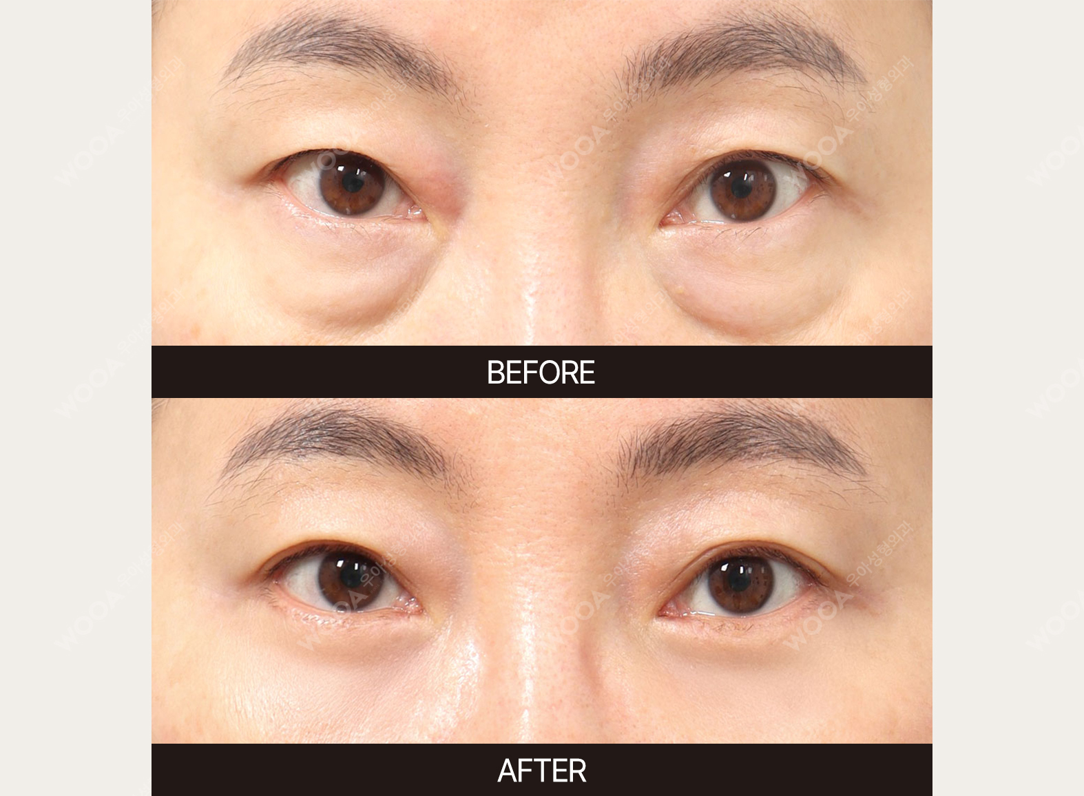 Fat removal simply eliminates bulging fat, while fat repositioning reshapes the under-eye area by moving protruding fat into hollow areas. This creates a smoother, more even contour and can simultaneously improve volume loss and dark circles.